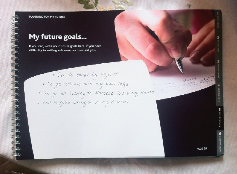 The stroke workbook is a unique tool designed to be given to stroke survivors to help support their self-management. It includes the experiences and ideas of 14 different people the strategies they have found useful in their recovery. There is space for users to record their , and work out their plans and targets for the future.